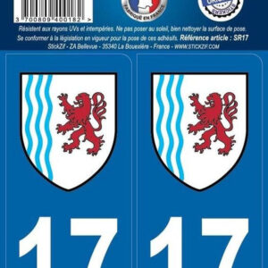 Adhesifs region departement 17 nouvelle aquitaine x2 disponible à Abidjan, Bouaké, Yamoussoukro, San Pedro, Daloa, Korhogo, Man, Gagnoa, Divo et Abengourou – Côte d’Ivoire