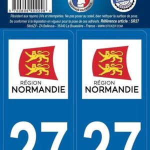 Adhesifs region departement 27 normandie x2 disponible à Abidjan, Bouaké, Yamoussoukro, San Pedro, Daloa, Korhogo, Man, Gagnoa, Divo et Abengourou – Côte d’Ivoire