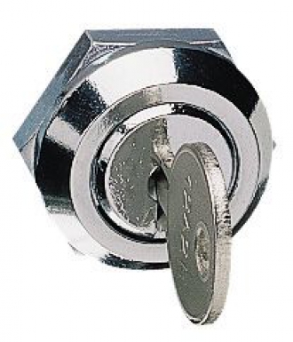BOUTON-VERROU MÉTALLIQUE AVEC SERRURE À BARILLET ET 2 CLÉS N° 1242E.