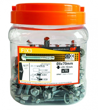 CHEVIL. SPIT FIX 3 8X70/20-10 M8 MT + ÉCROUS ET ROND. PRÉMONTÉES COND.75.