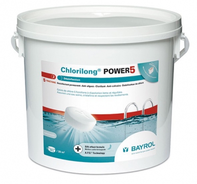 CHLORE LENT CHLORILONG POWER 5 – GALETS 250 G – SEAU 5 KG.