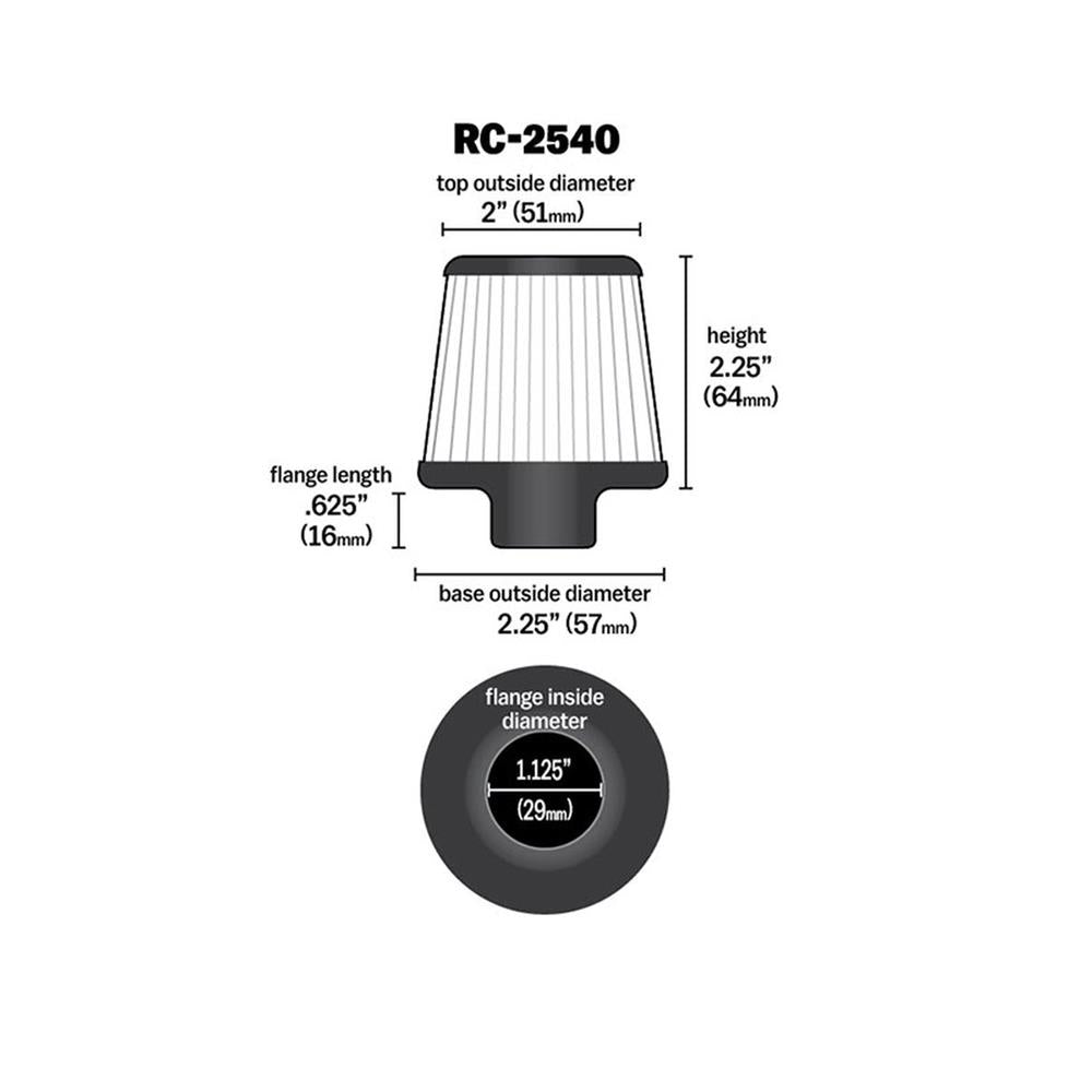 Filtre a air universel k&n rc-2540.