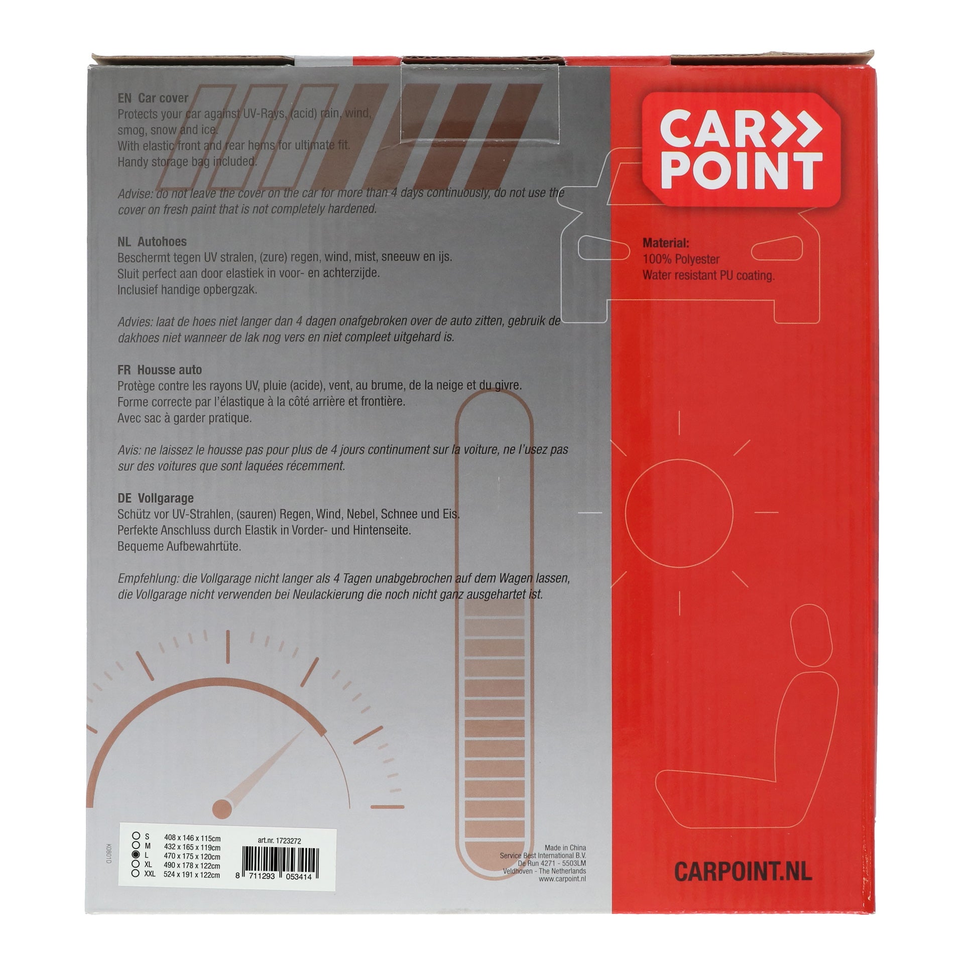 Housse auto polyester l 470x165x119cm.