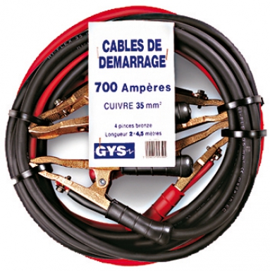 JEU DE 2 CÂBLES DE DÉMARRAGE 700 A – 35 MM2 – 2 X 4,5 MÈTRES – AVEC PINCES BRONZE.