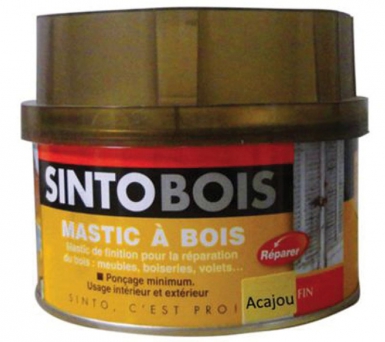 MASTIC À BOIS SINTOBOIS FIN ACAJOU DURCISSEUR – BOÎTE 500 ML.