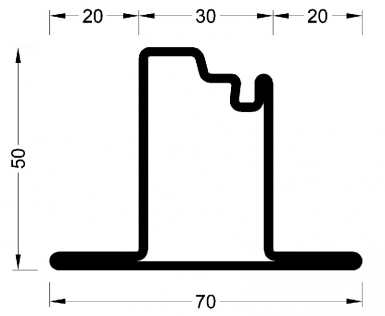 PROFILÉ À AILETTE TYPE T 1J SÉRIE 50 ” V53021 ” LG. 6 M ÉP. 2 MM 3.69 KG/M.