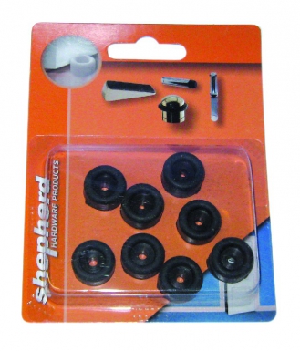 TAQUETS DE SIÈGE CAOUTCHOUC NOIR Ø 16 MM BLISTER 8 P.