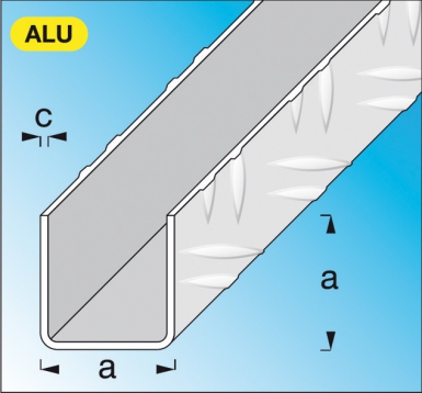 U CARRÉ ALUMINIUM BRUT DIM. AXC : 23,5X1,5/2,0 MM LG. 1 M.